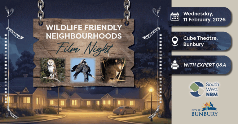 The evening aims to inspire local residents to make simple changes that help Bunbury’s native wildlife thrive in their own backyards. Displays from local wildlife organisations and a light supper will round out a relaxed, family-friendly night of learning and connection.
