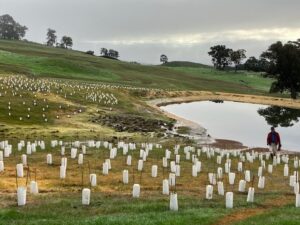 The little devices measure biological activity levels in the environment, and we’ll be comparing recordings from our revegetated dams with those captured at control sites where no plantings have occurred. The recordings will also be monitored over the life of the project to detect change in biological activity.