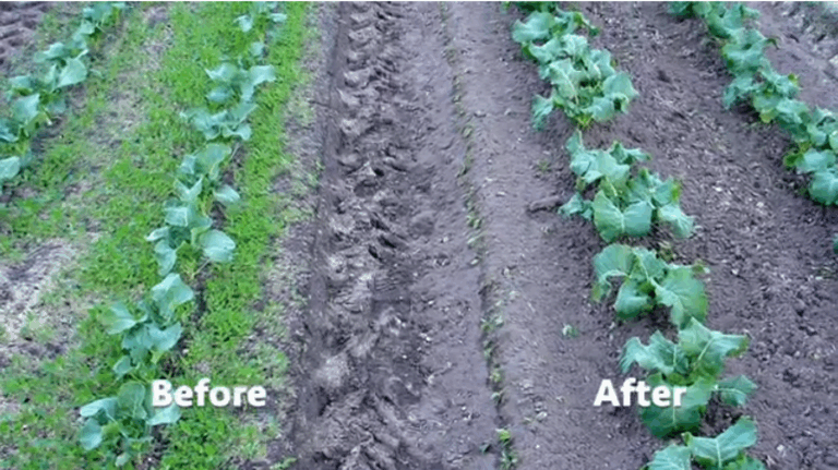 Before and after demonstration of Robert Tucker’s machine through a brassica crop.
